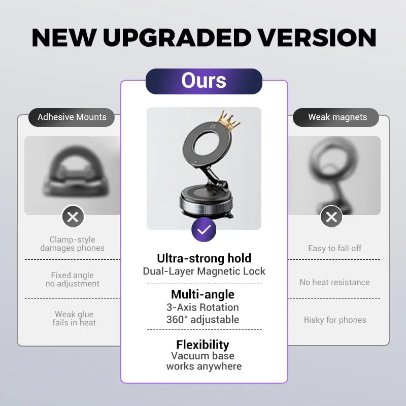 - Upgraded 360° Adjustable Cell Phone Holder:Upgraded magnetic suction phone mount offers 360-degree rotation. Whether it is landscape or portrait mode, it can be easily adjusted to get the best angle you want. Freely enjoy the hands-free navigation and communication like never before