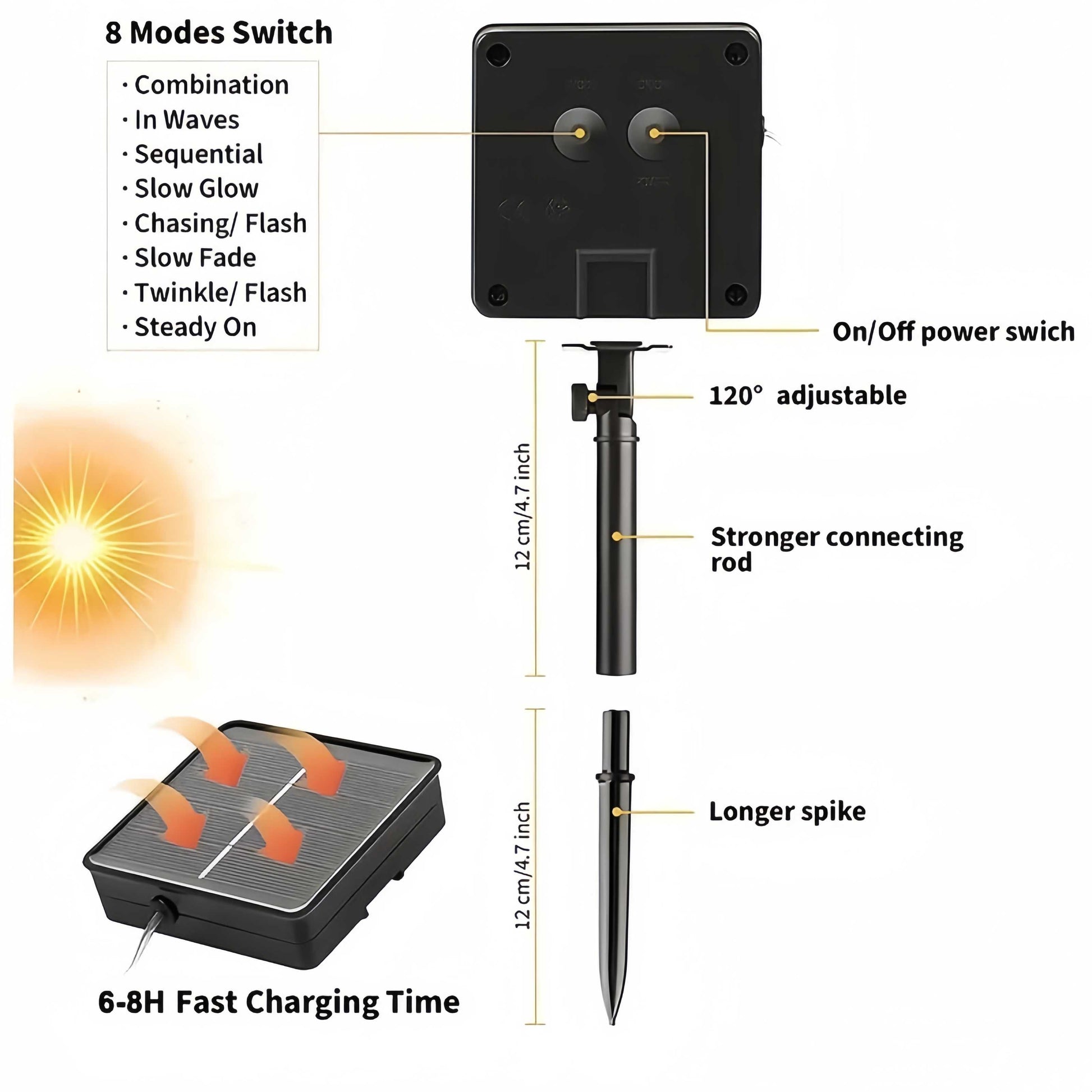 Offers 8 distinct lighting modes to add a joyful and diverse atmosphere to your outdoor garden decor, catering to different decorative needs.